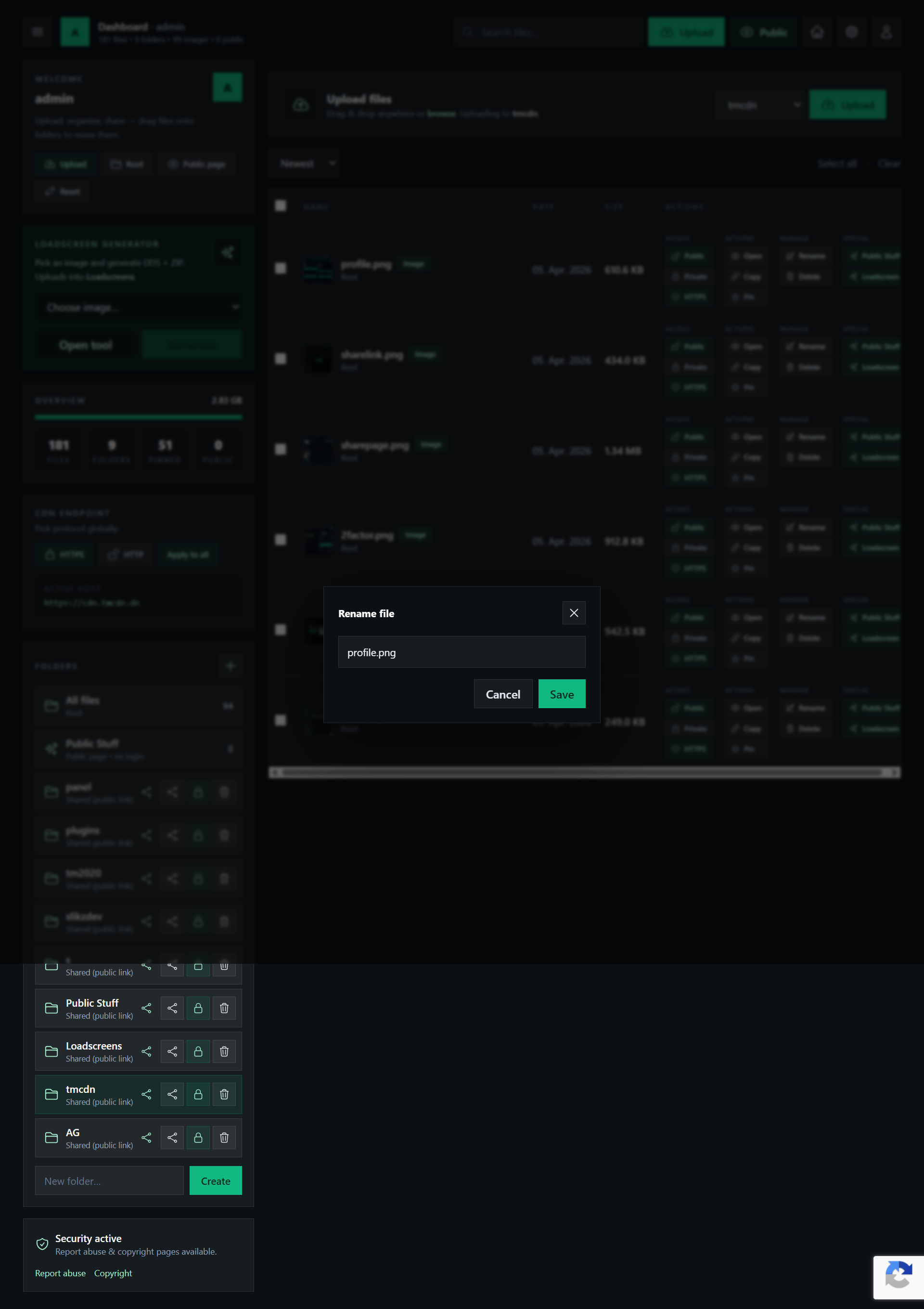 Rename files, copy links and manage everything in a clean dashboard.